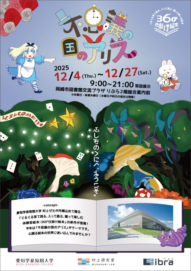 2025年度は「不思議の国のアリス」をテーマに12月4日(木)から12月27日(土)まで約1ヶ月間、岡崎市図書館交流プラザりぶらにて実施します。